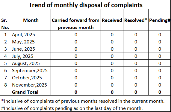 "NIL customer complaints - A proof of our dedicated & transparent customer service"
